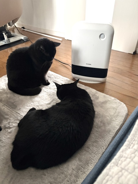ヒーターの前から追い出されたスミちゃんが恨めしそうな顔でアヤちゃんを見てる「こいつめ…」 アヤちゃんは視線を気にせず顔を洗ってましたテレビで猫···