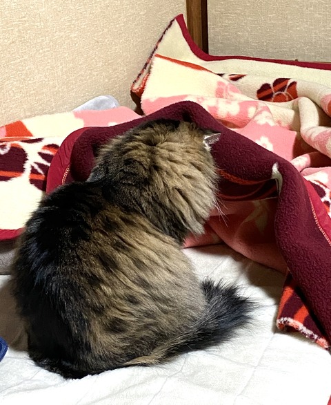 【猫写真】母と一緒の布団で寝たいマロちゃん