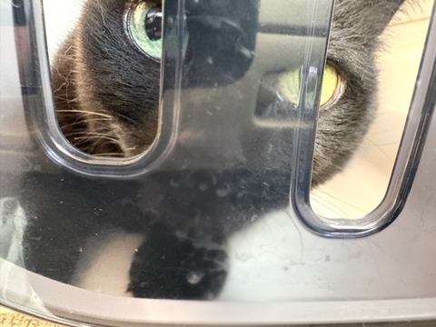 「今日はもう掃除しなくていいよ」停止ボタンを押してあげる猫